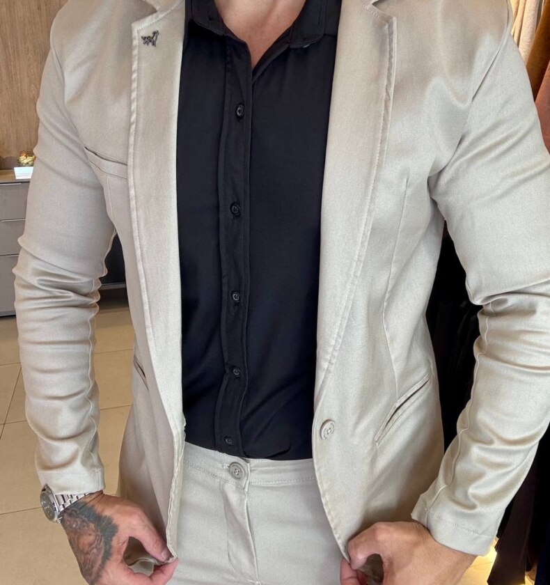 Blazer Aceti. C/Forro Elast. Per Pochi – Areia combina sofisticação e versatilidade, o tecido acetinado dá um toque moderno e elegante, tem um caimento estruturado ideal para um look refinado mas com uma sensação menos formal que blazers tradicionais. É uma peça versátil que pode ser usada desde eventos sociais até ambientes de trabalho. Pode ser combinado com calças em alfaiataria ou até jeans para um look mais casual.