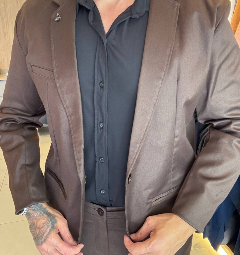 O Blazer Acetinado Per Pochi – Marrom combina sofisticação e versatilidade, o tecido acetinado dá um toque moderno e elegante, tem um caimento estruturado ideal para um look refinado mas com uma sensação menos formal que blazers tradicionais. É uma peça versátil que pode ser usada desde eventos sociais até ambientes de trabalho. Pode ser combinado com calças em alfaiataria ou até jeans para um look mais casual.