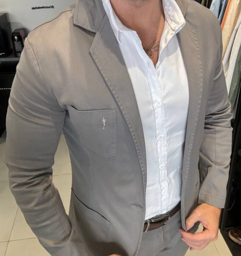 O Blazer de Sarja Acetinado – Cinza Grafite é uma mistura ideal entre o conforto da sarja e o acabamento refinado do acetinado. Com o seu caimento estruturado é ideal para criar um look elegante mas com uma sensação menos formal que blazers tradicionais. É uma peça versátil que pode ser usada desde eventos sociais até ambientes de trabalho. Pode ser combinado com calças em alfaiataria ou com jeans para um estilo mais descontraído.